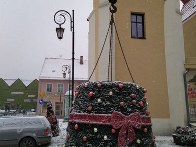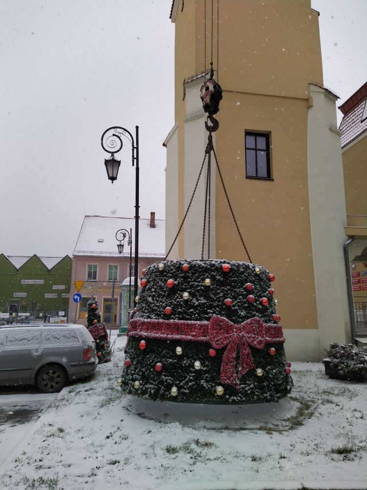 Wczoraj tj. 03.12.2020 r. (czwartek) służby ZGK zamontowały świąteczne drzewko, które tradycyjnie, jak co roku zdobi ścinawski rynek.